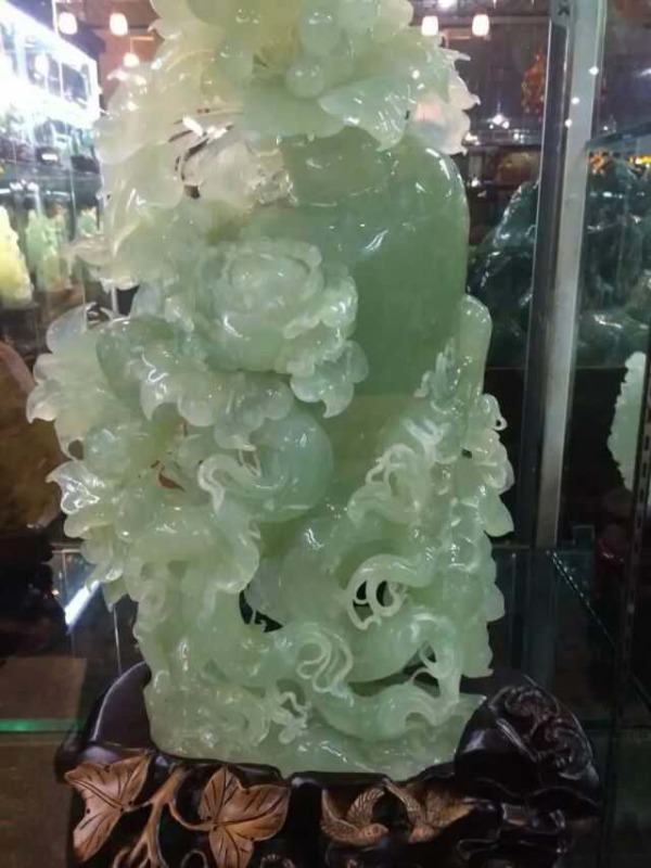 The diameter is about 4 meters high, 3 meters thick, dark green color,essential oils and translucent, delicate texture, hard texture, integrity, very rare and amazing.